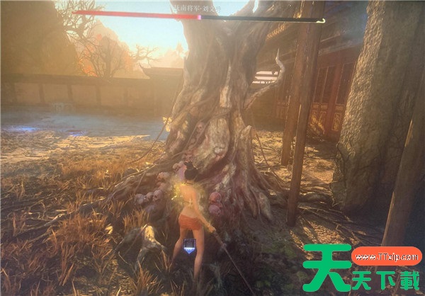 虽然刘文秀的大招“五雷轰顶”和远程攻击火枪依然会对你造成伤害,但由于他被困在柱子和树之间无法接近,你的操作难度就大大降低。只要稍微注意避免被火枪击中,基本就能轻松度过战斗。