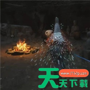 完成这个动作后,回到主路,继续往前走,看到岔路后左转,沿着主路一直走,进入山洞后就能找到熊猫商人。