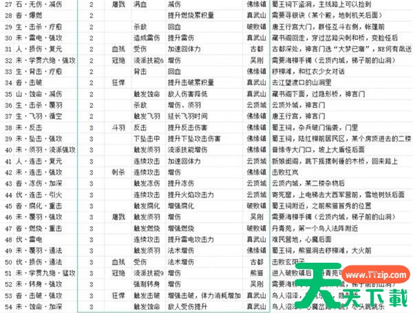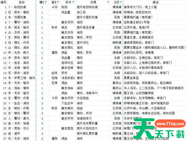 由于表格制作的需要,文字描述在一定程度上进行了简化。如果在理解效果方面有疑问,可以参考游戏内的详细描述。若玩家找不到特定位置,建议参考其他详细的图文或视频攻略,帮助快速找到自己需要的信息。