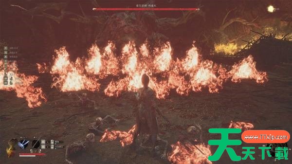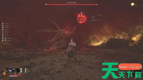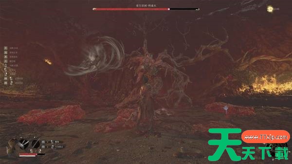 2. 在战斗中,缚魂木只会在血池中发起攻击,它的招式简单且易躲避。因此,我们只需利用轻攻击积攒能量,再用连火珠进行高伤害轰炸,便能轻松击败缚魂木。