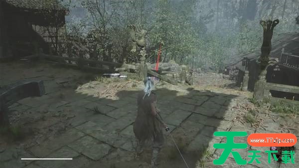 2. 路线:走过独木桥,沿着上坡一直前进。途中会遇到一个岔路,选择木制楼梯向下走。这里有个推石球的胖哥,我们则选择相反方向继续上山。