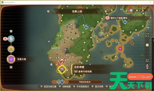 在幻想生活i:转圈圈的龙和偷取时间的少女中,无垠大陆有一个非常高效的刷宝洞窟,很多玩家可能还不太了解它的确切位置。这个洞窟位置如图所示,玩家只需要进出洞口即可刷新资源,进出几次便能得到相当丰厚的奖励。