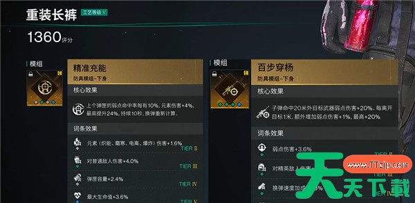 长裤方面可以选择“百步穿杨”,让你在远程精准狙击时占据优势。鞋子建议搭配掩护备战,增强生存能力。手套上则推荐弱点强化,提升击中敌人弱点后的伤害。