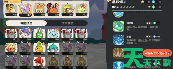 晶石蜗作为鹿鹿平衡队中的一员,主要承担防守和持续输出的角色。在选择晶石蜗的性格时,建议优先选择能增强生命、物防和魔防的性格,这些属性的提升能让晶石蜗在战斗中更具耐久性。至于技能选择,可以搭配蜡质膜、冰雹、地刺以及天光。这些技能组合不仅能提供有效的控制,还能打击敌方多个弱点,确保你的队伍能够承受住敌人的进攻。