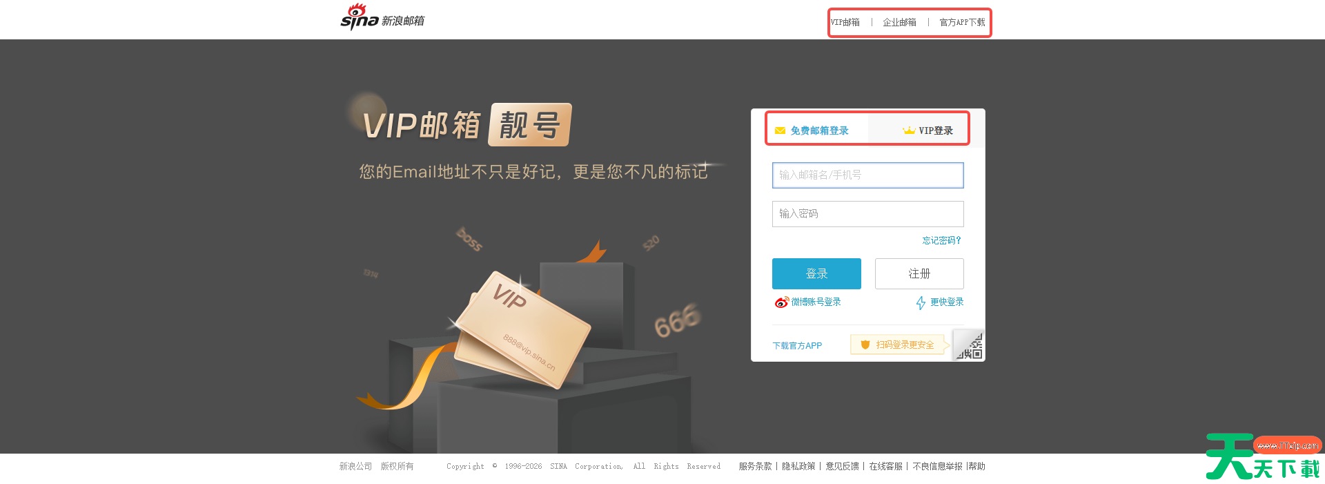 新浪邮箱是新浪网推出的一款电子邮件服务,主打安全、稳定、快速、易用。新浪邮箱提供多种邮箱类型,包括:免费邮箱(@sina.com、@sina.cn)、VIP邮箱、企业邮箱可满足个人用户和企业用户的不同使用需求。用户只需通过任意浏览器访问该网址,即可进入邮箱登录页面,无需下载安装任何客户端。
