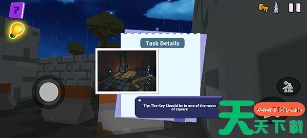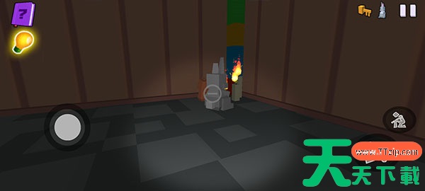 4、在游戏的左上角,你会看到一本书图标,代表本章的任务。在这一关中,你需要寻找藏在某个角落的钥匙,只有找到钥匙才能顺利离开这个地方。灯泡图标则是提示,当你遇到困难时,可以通过观看广告来获得一些有用的提示,帮助你顺利进行下去。