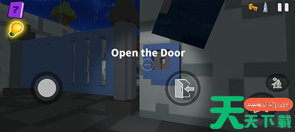 6、如图所示,当你找到并接近一个带有开关的蓝色门时,将屏幕中央的圆圈对准开关并点击,即可打开门,进入另一个空间,继续你的逃脱冒险。