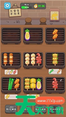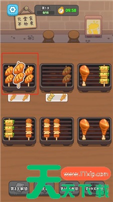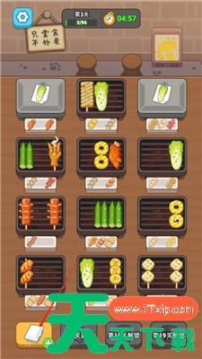 玩家需要按住并选中相同的烤串,将三个相同的串串组合在一起,完成打包,让它们神奇消失!
