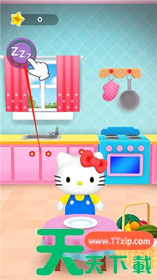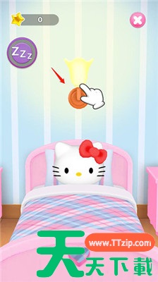 4. 除了喂食,游戏中还提供了其他的互动选项。例如,点击屏幕上的zzz图标,就能进入睡觉模式。让凯蒂猫得到充足的休息,为她的下一天储备能量。