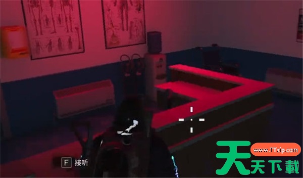 走出电梯后,左拐直走,在沿途找到可交互的通讯装置,点击 【接听】,随后继续直行,前往走廊尽头的大门。