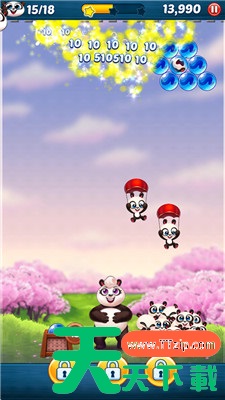熊猫泡泡龙是经典的泡泡龙消除手游,玩家需要帮助熊猫妈妈射击并消除同色泡泡,解救被困的熊猫宝宝。游戏操作简单,适合各个年龄段的玩家,既能锻炼反应能力,又能带来轻松解压的休闲体验。游戏内设有丰富的关卡,每一关都有不同的布局和挑战,玩家需要灵活运用策略,精准射击泡泡,才能顺利通关。随着关卡的推进,泡泡的排列方式会变得更加复杂,增加了挑战性,但也让游戏更具趣味性。此外,游戏中提供了多种特殊道具,如彩虹泡泡、炸弹泡泡和闪电泡泡等,可以帮助玩家快速清理大面积泡泡,让通关变得更加轻松。除了经典的闯关模式外,游戏还融入了丰富的任务系统,玩家可以完成各种挑战任务,获取金币、道具奖励,甚至解锁更多有趣的玩法。同时,精美的卡通画风、可爱的熊猫形象以及轻松愉快的背景音乐,为玩家营造了温馨又治愈的游戏氛围。快跟随天天下载Ttzip的脚步,一起探索这款趣味十足的泡泡龙游戏吧!无论是想打发碎片时间,还是寻求有趣的休闲挑战,熊猫泡泡龙都能带来欢乐和放松,让你沉浸在泡泡消除的乐趣之中!