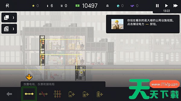 6. 建造好的办公室需要供电,点击左下角,找到电量设施,开始接通电力