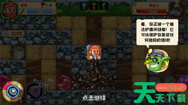 在挖掘过程中,尽可能多地收集散落在地下的宝石,这些宝石不仅能用于升级装备,还能兑换重要资源。同时,魔法护盾是保护自身安全的关键道具,使用后可以暂时抵御怪物攻击和掉落石块的伤害,让你的冒险之旅更加顺利。