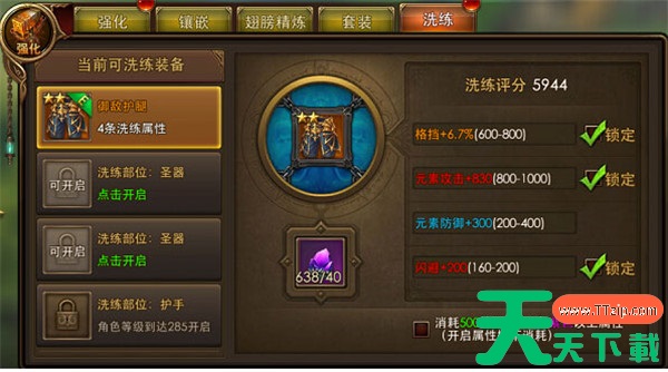 通过装备洗练,你可以大幅提升装备的各项属性,尤其是当你面对高难度BOSS或是进行PVP时,强力的装备属性能给你带来巨大的优势。天天下载Ttzip建议大家在进行洗练时,尽量保留紫色及以上的属性,尤其是在战斗力上升的重要时刻,红色品质的属性将是你战斗力提升的关键。