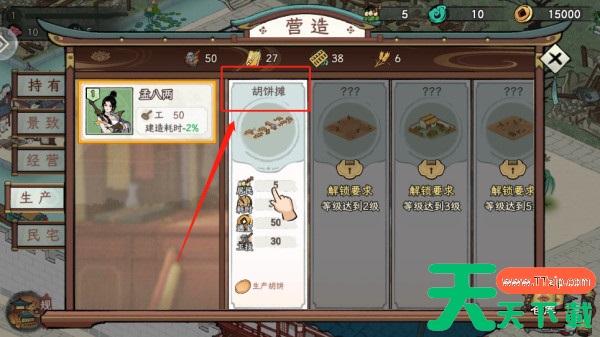 3. 在此步骤中,您会发现可以建造胡饼摊,点击屏幕上的建造按钮进行建造。