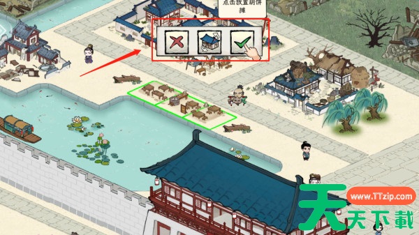 4. 在建造过程中,您可以沿着道路进行建筑物的摆放,并且可以旋转建筑物的方向,直到您满意为止,然后点击确认按钮。