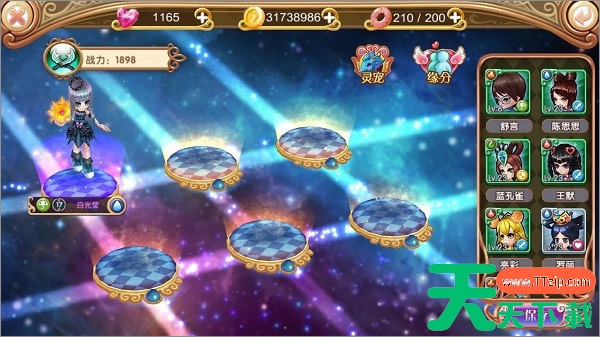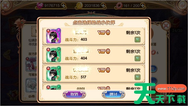 要让角色参加战斗,首先要通过【阵容】界面来选择角色。在主界面右下角点击【阵容】按钮,打开阵容界面,显示六个可供选择的位置,也就是最多可以上阵六个角色。如果阵容位置没有完全占满,系统会自动启用【助战系统】,让你选择小伙伴来助战。
