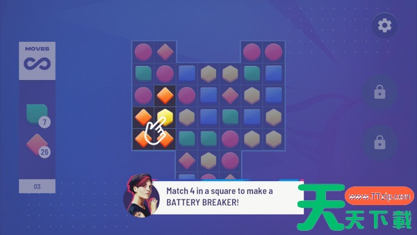 玩家在游戏中需要定制汽车,并通过消除方块收集所需的材料。每个关卡都会有指定的材料任务,玩家需通过滑动消除来达成目标。
