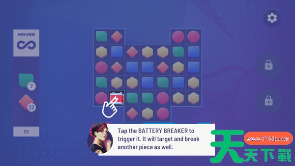 点击合成的电池后,可以触发自动搜索周围材料的效果,同时伴随炫酷的爆炸特效,帮助快速清理关卡。