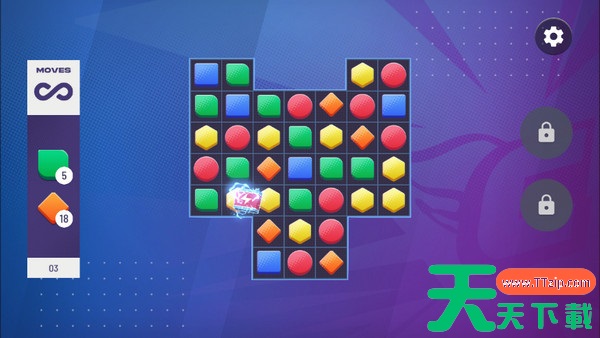 将不同的特殊方块进行组合消除,可以触发全屏特效。效果不仅震撼,还能清空大量方块,大大提高游戏效率。