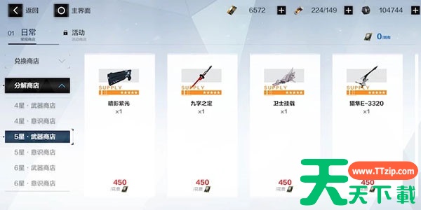 2. 另一个获取5星武器的途径是使用5星武器碎片进行兑换。在分解商店中,玩家可以消耗450个碎片兑换5星武器,而通常分解一把5星武器会得到150个碎片,因此这种方法更适合抽不到心仪武器的玩家或氪金玩家。