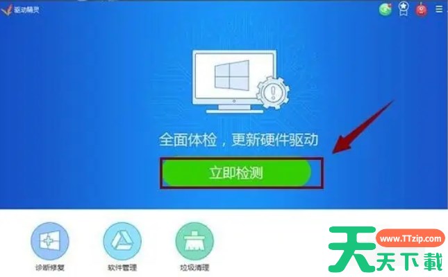 打开驱动精灵软件,点击主界面中的“立即检测”按钮,软件将自动扫描电脑中缺失或过时的驱动程序。