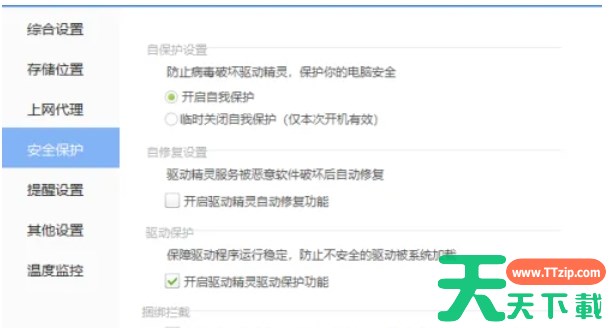 以上就是天天下载Ttzip为你整理的驱动精灵怎么开启驱动保护功能以及驱动精灵开启驱动保护功能的方法啦,希望能帮到您!