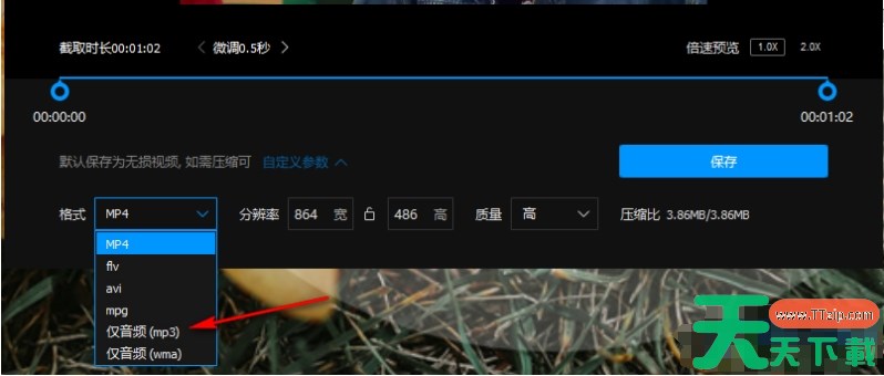 QQ影音是由腾讯推出的一款非常会用的视频播放软件,那么QQ影音怎么转换成mp3?QQ影音转换成mp3的方法?下面就让天天下载Ttzip给大家解答下吧! QQ影音怎么转换成mp3? 1、点击播放器右下角的“扳手”图标。 2、选择“截取”功能。 3、在截取页面下方,点击“自定义参数”选项。 4、在格式下拉菜单中选择“仅音频MP3”后点击“保存”即可。 以上就是天天下载Ttzip为您整理的QQ影音怎么转换成mp3?QQ影音转换成mp3的方法啦,希望能帮到您。 除特别注明外,本站所有文章均为 天天下载 原创,转载请注明出处来自 https://www.ttzip.com/208558.html