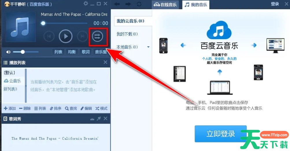 千千静听是一款拥有海量音乐曲库的强大音乐播放器,那么千千静听怎么随机播放?千千静听随机播放的方法?下面就让天天下载Ttzip给大家解答下吧! 千千静听怎么随机播放? 1、打开千千静听软件,在页面上点击“二根箭头”的按钮。 2、在弹出的下拉菜单中,选择“随机播放”即可。 以上就是天天下载Ttzip为您整理的千千静听怎么随机播放?千千静听随机播放的方法啦,希望能帮到您。 除特别注明外,本站所有文章均为 天天下载 原创,转载请注明出处来自 https://www.ttzip.com/208576.html