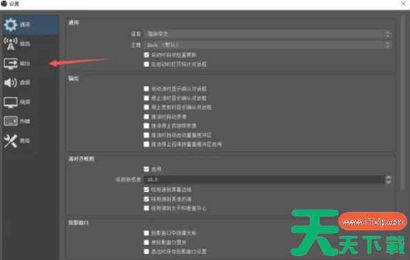 在设置窗口中,点击左侧的 “输出” 选项。这将打开输出设置页面,您可以在此配置视频和音频的编码参数。