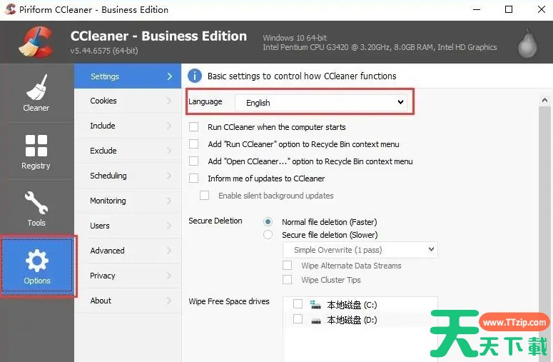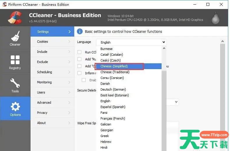 ccleaner是一款备受赞誉的系统优化和清理工具,那么ccleaner怎么设置中文?ccleaner设置中文的方法?下面就让天天下载Ttzip给大家解答下吧! ccleaner怎么设置中文? 1、在ccleaner主界面,点击左侧菜单栏中的“选项”按钮,进入软件的选项设置界面。 2、在设置选项卡下,找到“语言(Language)”这一设置项,点击其右侧的下拉菜单,在下拉菜单中,找到并选择“Chinese (Simplified)”即可。 以上就是天天下载Ttzip为您整理的ccleaner怎么设置中文?ccleaner设置中文的方法啦,希望能帮到您。 除特别注明外,本站所有文章均为 天天下载 原创,转载请注明出处来自 https://www.ttzip.com/208593.html