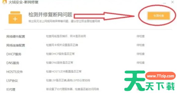 以上就是天天下载Ttzip为你整理的火绒安全软件怎么进行断网修复以及火绒安全进行断网修复的方法啦,希望能帮到您!