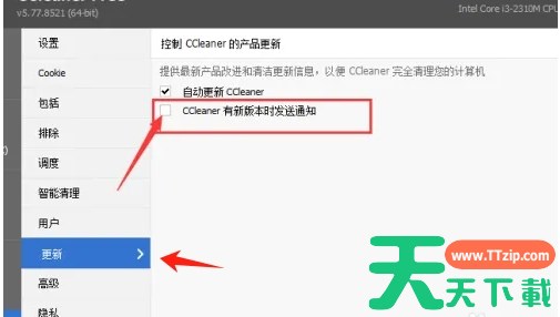 以上就是天天下载Ttzip为您整理的ccleaner怎么关闭新版本发送通知?ccleaner关闭新版本发送通知的方法啦,希望能帮到您。