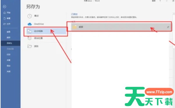 点击Word界面左上角的【文件】选项。在弹出的菜单中选择【另存为】。在另存为界面中,选择保存位置为【这台电脑】,并指定保存路径为【桌面】