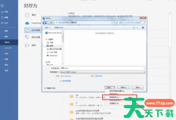 在另存为设置栏中,点击右下角的【工具】按钮。在弹出的下拉菜单中选择【常规选项】。