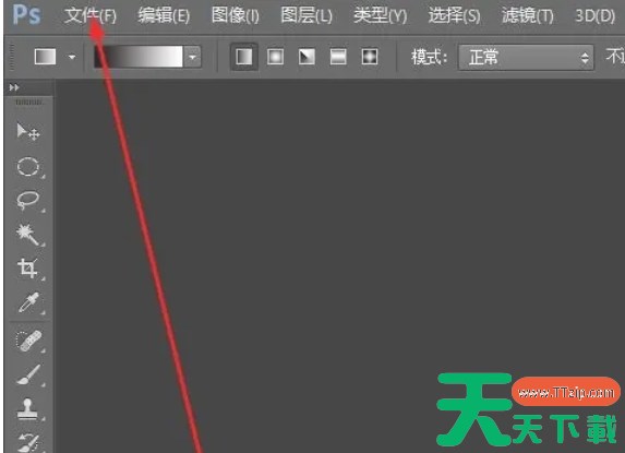 启动 Photoshop 软件,进入操作界面。点击左上角菜单栏的 「文件」。