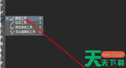 在左侧工具栏中,找到 「笔刷工具」(图标类似画笔)。右键点击 笔刷工具图标,展开工具组。在弹出的选项中,选择 「画笔工具」(快捷键:B)。