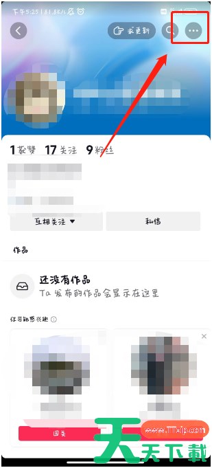 具体操作如下,进入个人账号页面,找到右上角的三个点图标