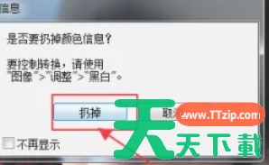 弹出“灰度”对话框,提示是否丢弃颜色信息。点击“扔掉”(Discard)按钮,确认将图像转换为灰度模式。