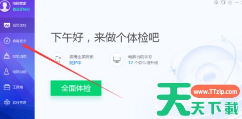 打开腾讯电脑管家,依次点击“病毒查杀”、“修复漏洞”。
