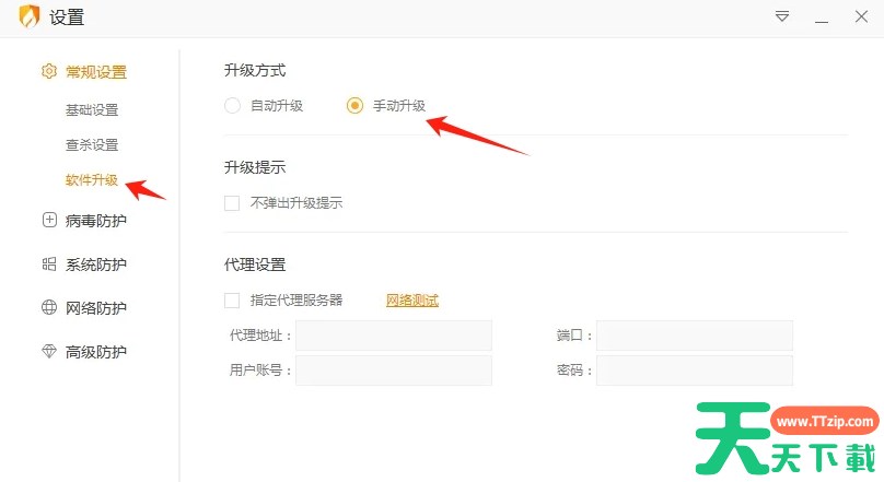 火绒安全软件是由北京火绒网络科技有限公司专门为广大电脑用户所打造的一系列电脑防护管理软件,那么火绒安全怎么关闭自动升级?火绒安全关闭自动升级的方法?下面就让天天下载Ttzip给大家解答下吧! 火绒安全怎么关闭自动升级? 1、打开火绒安全软件,点击右上角的菜单图标,在菜单中点击“安全设置”。 2、在安全设置中找到并点击“软件升级”选项,在软件升级设置中,将升级方式选择为“手动升级”。 以上就是天天下载Ttzip为您整理的火绒安全怎么关闭自动升级?火绒安全关闭自动升级的方法啦,希望能帮到您 除特别注明外,本站所有文章均为 天天下载 原创,转载请注明出处来自 https://www.ttzip.com/208707.html