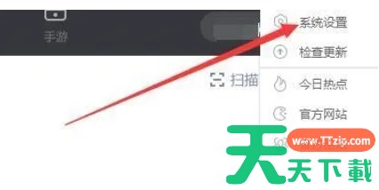 2、从下拉菜单中选择系统设置。