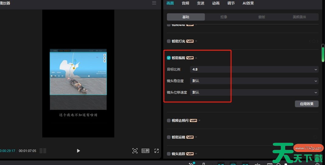 方法一:调整画面大小比例,调整位置,使水印在画面外面