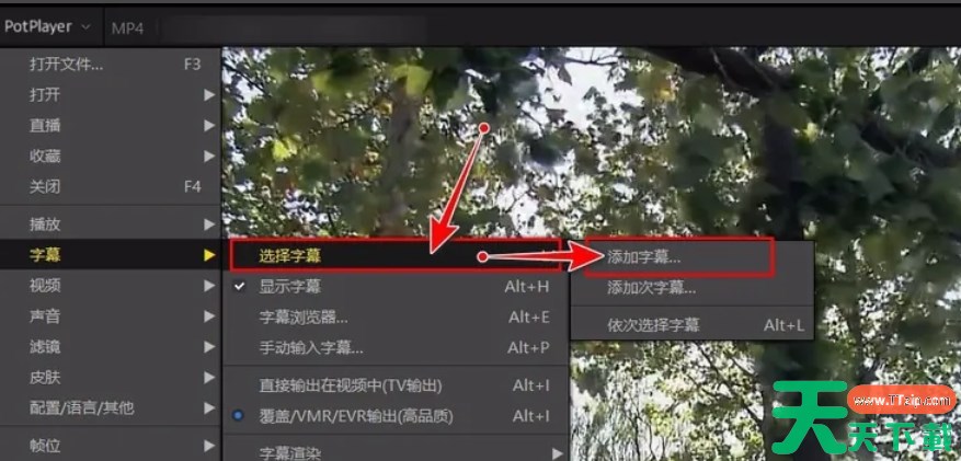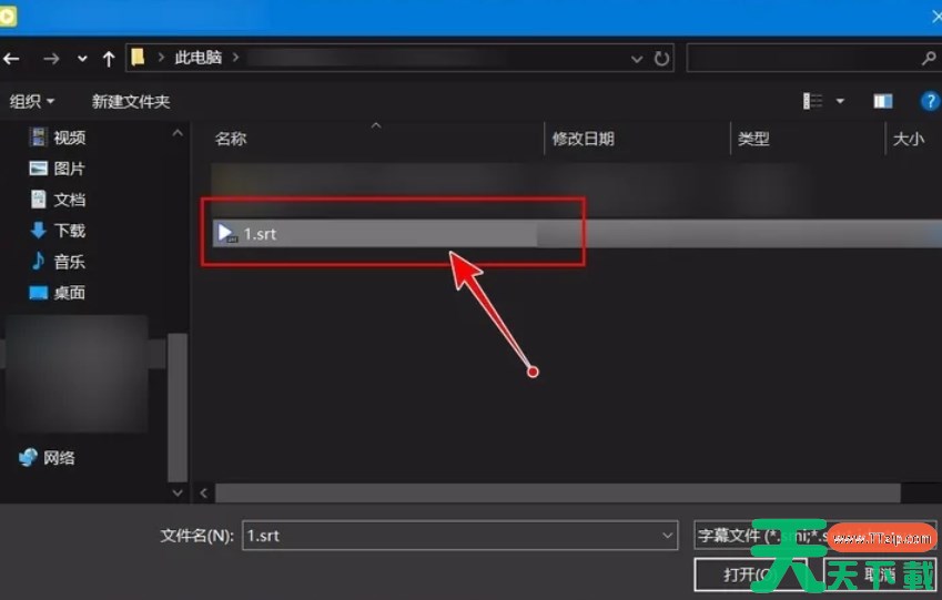 在弹出的文件浏览器中,找到并选择需要加载的字幕文件(如 .srt、.ass 等格式)。