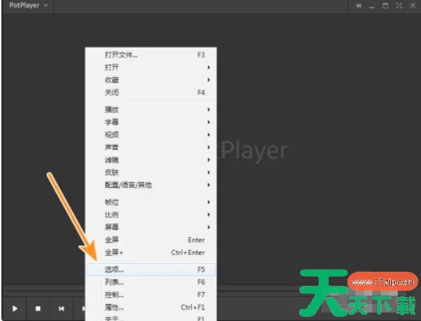 点击左上角【potplayer】菜单,选择 【选项】(或按快捷键 F5)。