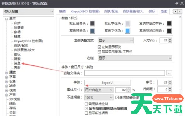 在选项窗口中,点击左侧导航栏的 “消息” 选项。