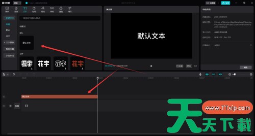 第二步:接着在主页新建一个文本,拖动到时间轴中。