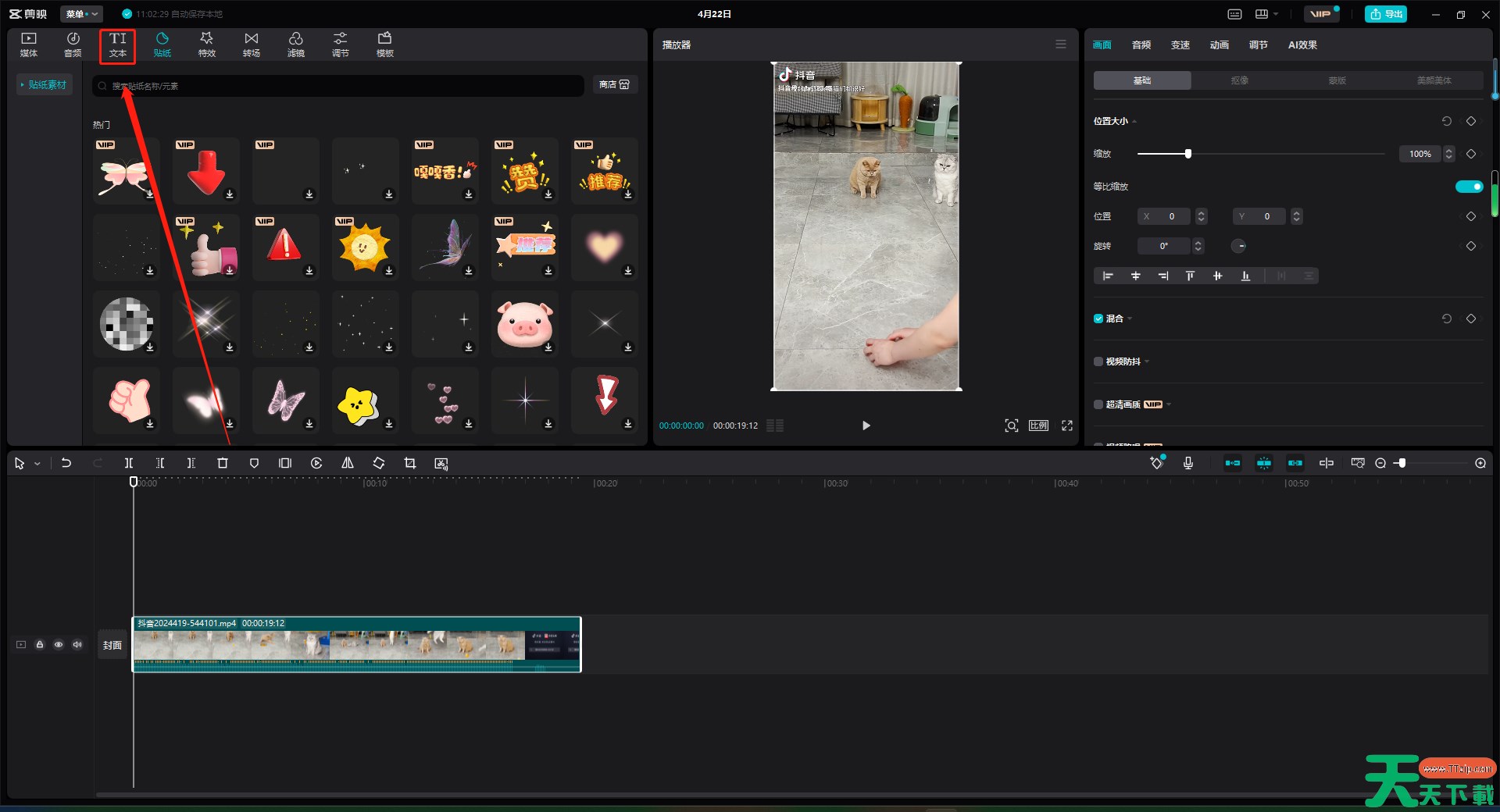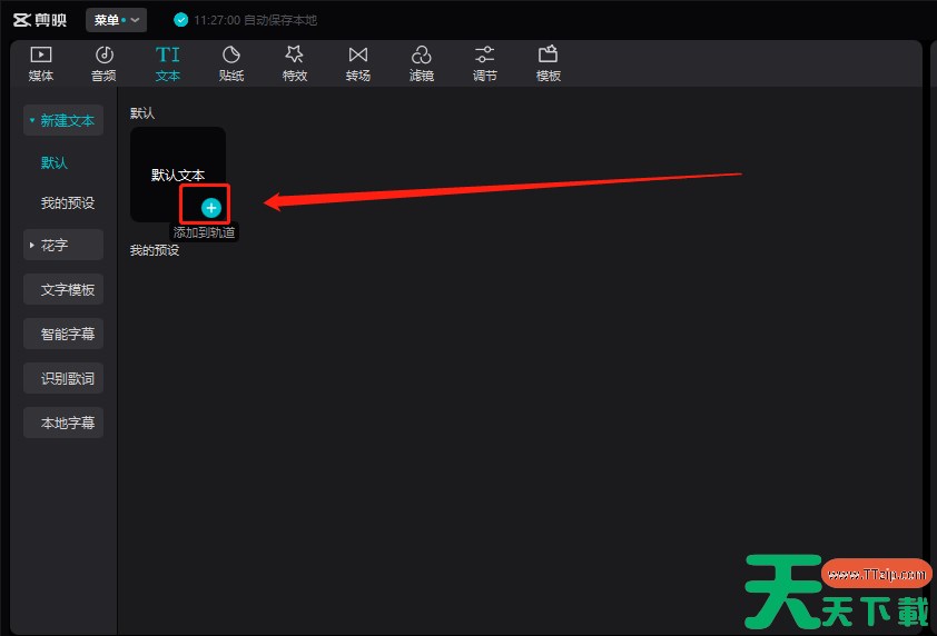 2、点击+号,把文本加入轨道。