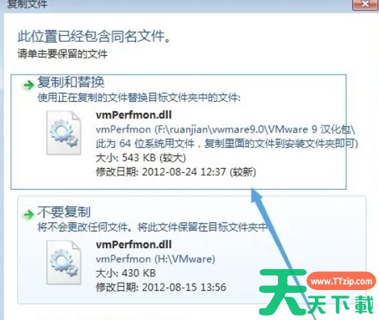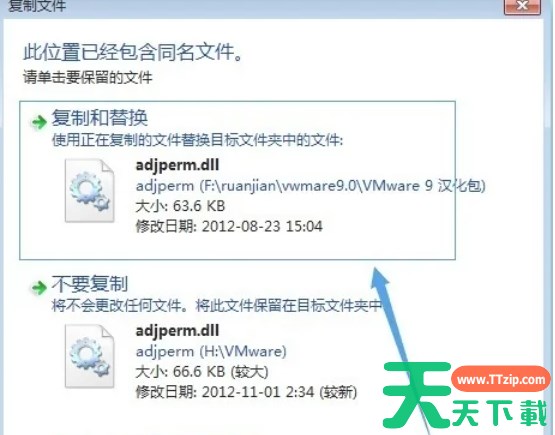 将解压后的文件夹中的文件(通常是除了特定说明不需要的文件外的所有文件)复制到VMware的安装目录下。例如,如果VMware安装在H:\VMware,那么就将文件复制到该目录下。在复制过程中,如果遇到提示是否合并x64文件夹,请选择“是”。在复制文件对话框中,勾选“复制和替换”选项,以确保覆盖原有的英文文件。