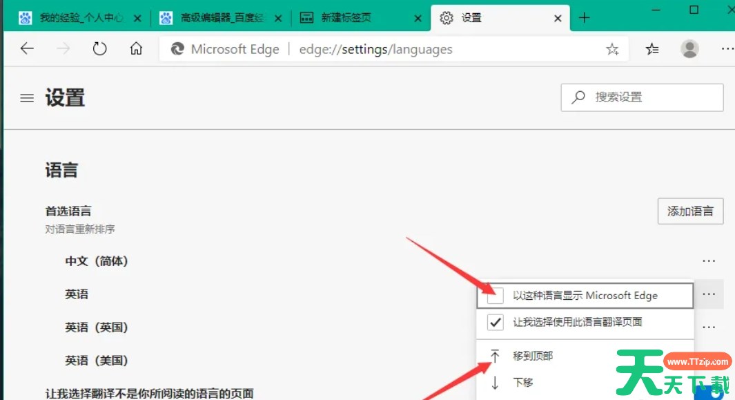 以上就是天天下载Ttzip为你整理的Edge浏览器如何自定义浏览器语言以及Edge浏览器自定义浏览器语言的方法啦,希望能帮到您